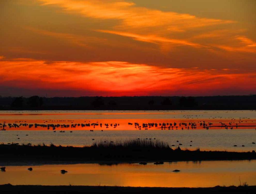 冬天成千上萬從北部飛來的候鳥聚集在這裡海灣上, 優遊自在過冬。