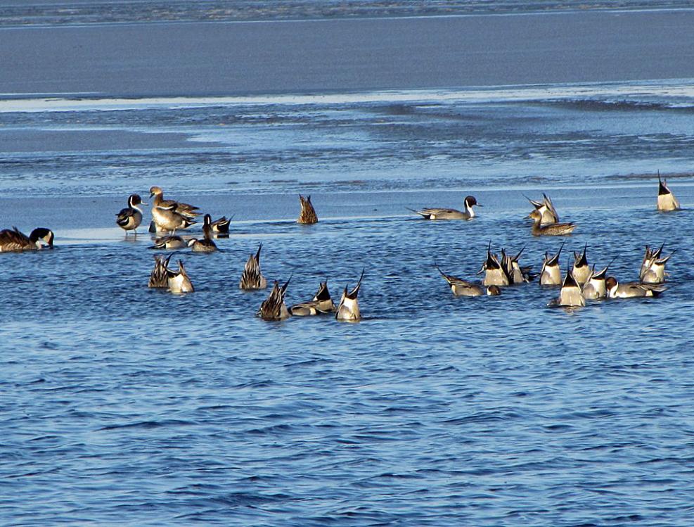 Many pintails in Edwin B. Forsythe (Brigantine) National Wildlife Refuge in New Jersey coast. Three of them