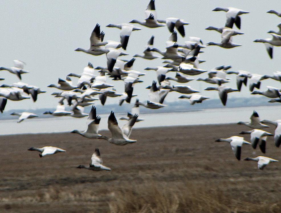 number (about 50,000 according to the Visitor Center) of snow geese in action as shown on my Travelogue