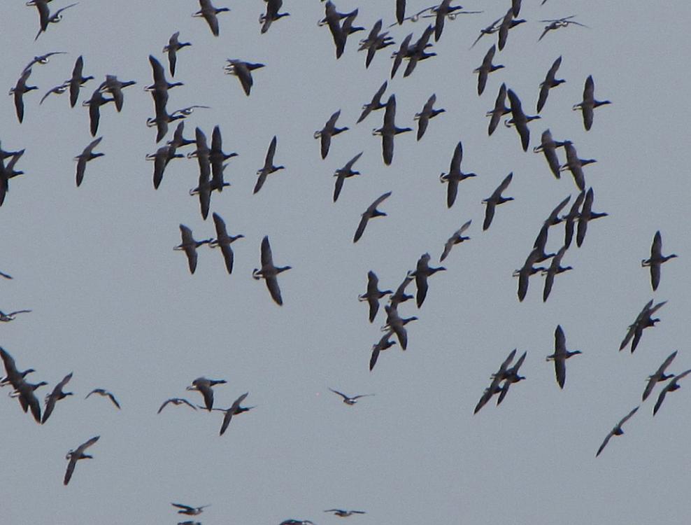 Large number of brant (geese) in flight in Edwin B. Forsythe (Brigantine) National Wildlife Refuge in New Jersey