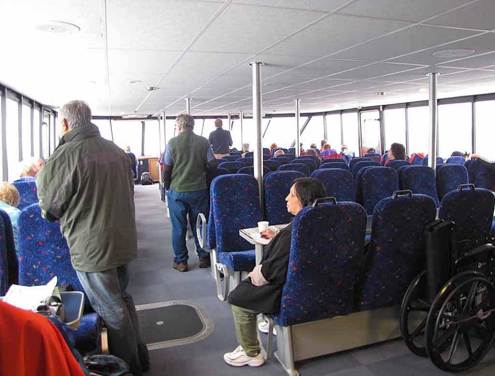 An inside view of the lower level of the boat for the boat tour of Misty Fjords National Monument. There is a