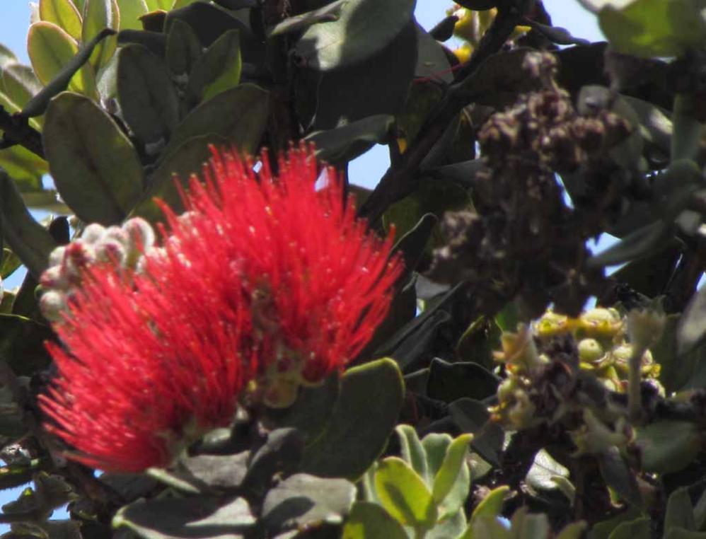 Cluster of Lehua flowers on Ohiʻa trees near Kilauea Caldera.