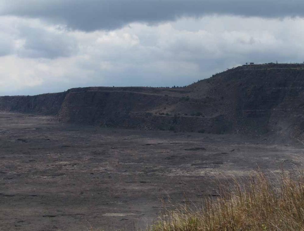 Zoom in for a closer view of the rim (side wall) and the floor of Kilauea Caldera. They are very different from