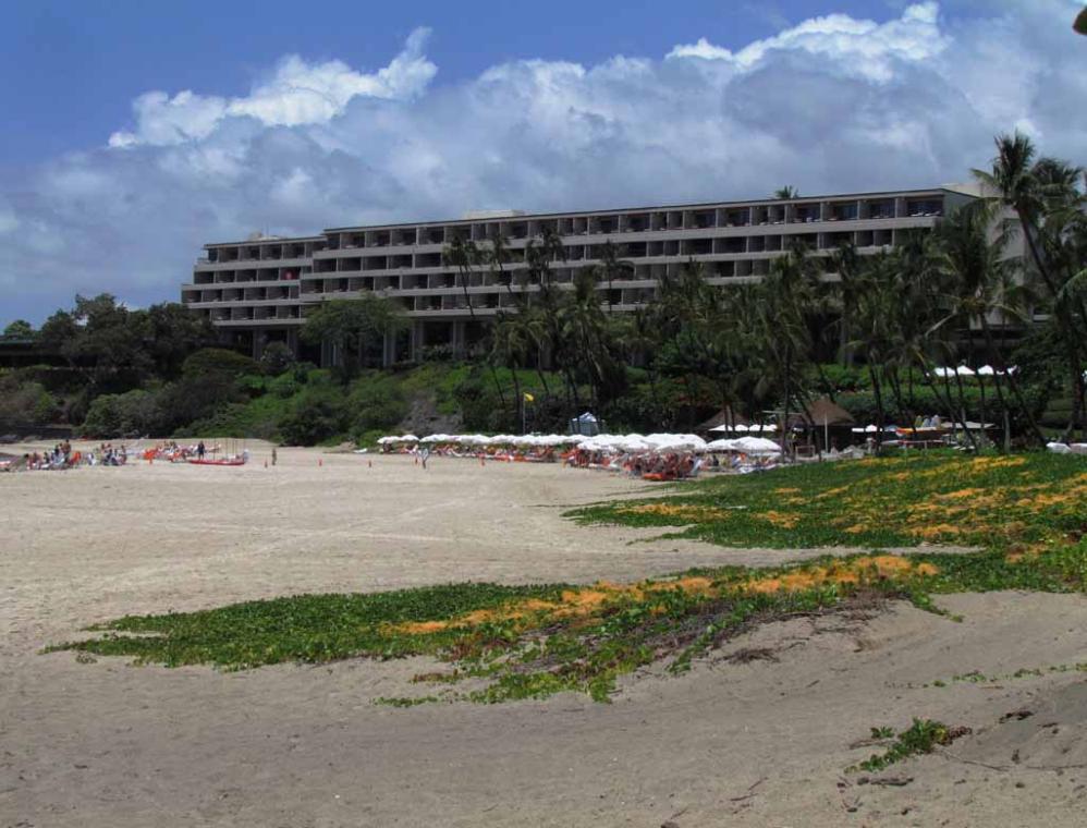 One of the upscale ritzy luxury and expensive beach resorts along beautiful Kohala coastal Hwy 19 north of