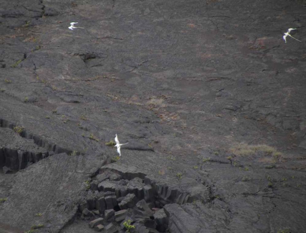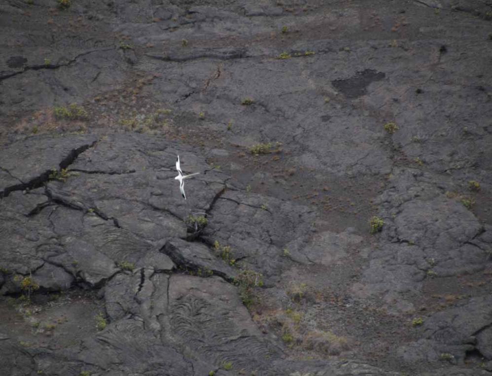 pictures showing flying long-tailed tropicbirds in Kilauea volcano. This is my first time experience to see