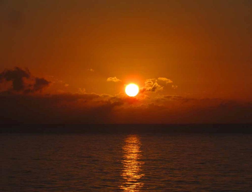 From our cruise ship and before sunset time, we did see several times of flying fish that jumped out of water