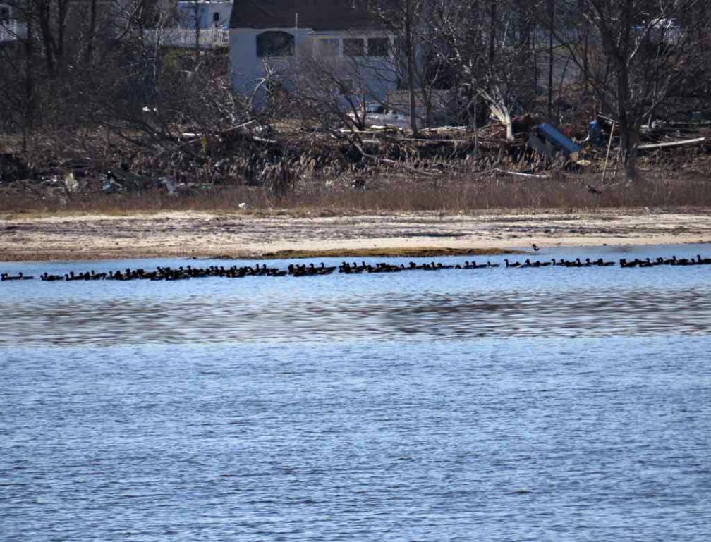 Another large group of many Brant at far (northwest) side of Keyport Harbor near the shoreline of Aberdeen.