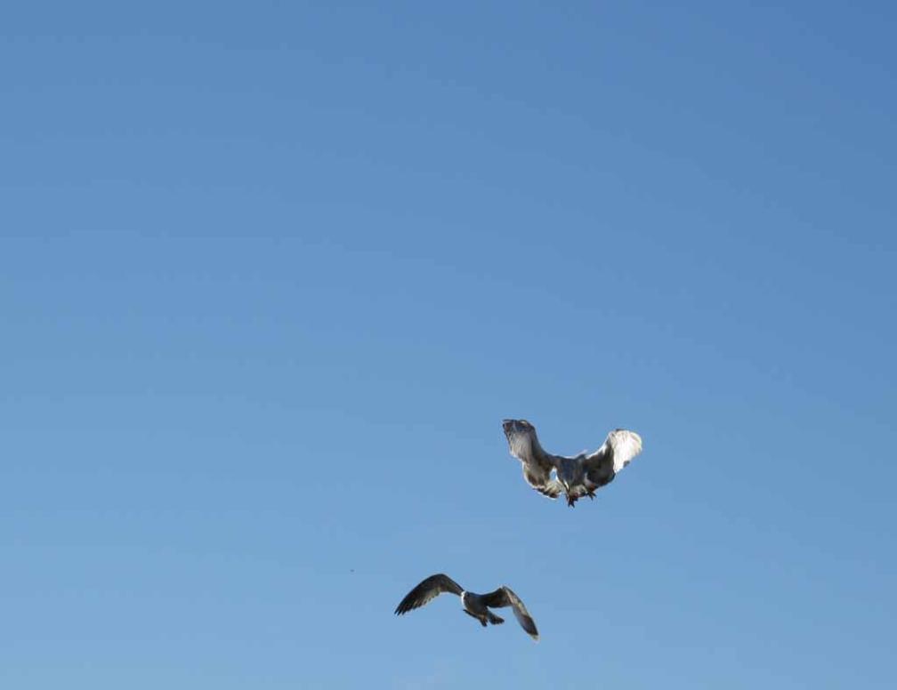 The delicious smell of cooked seafood and French Fry drives many gulls crazy into doing all kinds of fancy