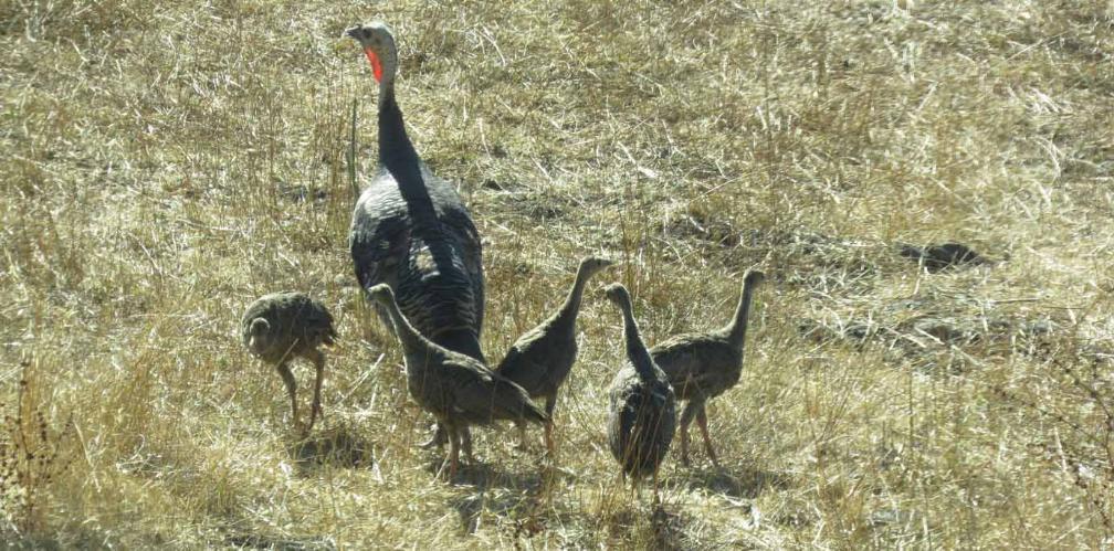 Turkeys congregate in flocks。 Sometimes these wild turkeys are in the backyard on Antelope Hill.