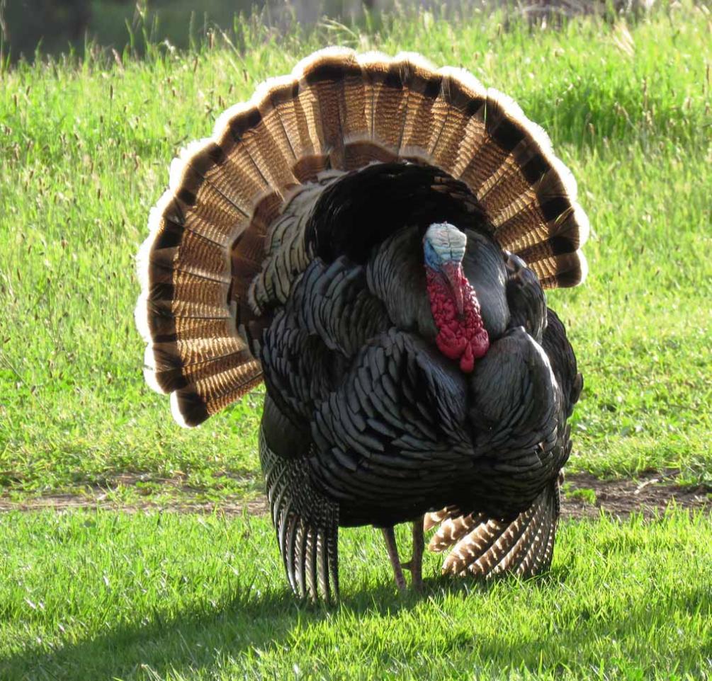 It is fascinating to see such colorful, handsome and impressive wild male turkeys when strutting their breeding