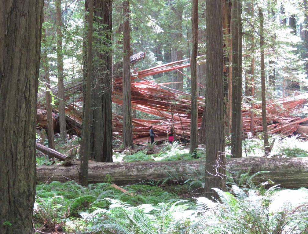 This giant redwood tree must have fallen hard for it had splintered this amazing way.