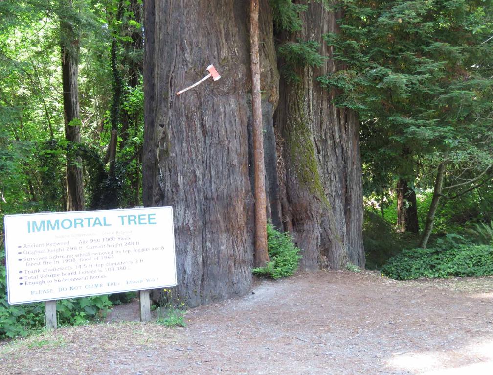 Immortal Tree: Though not the oldest redwood in the forest, this large tree is over 950 years old, and is