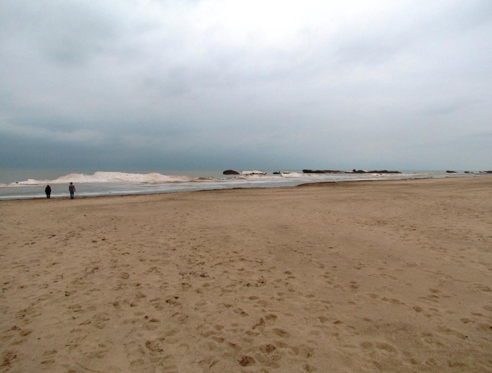 A view of the beach of Indiana Dunes National Lakeshore along Lake Michigan. There are still some big