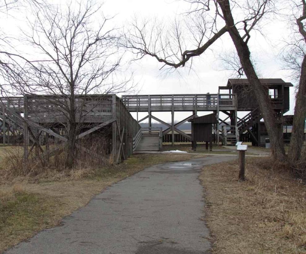 This is the elevated viewing platform at Jasper-Pulaski Fish and Wildlife Area for visitors to watch large