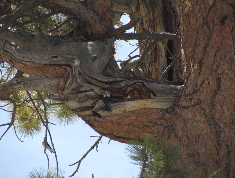 We saw many swallows flying around this pine tree near the ski facilities. When I zoomed in for a closer