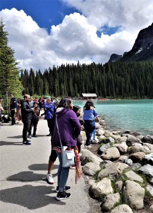 Km away with 2-hour waiting in order to come to see Lake Louise.