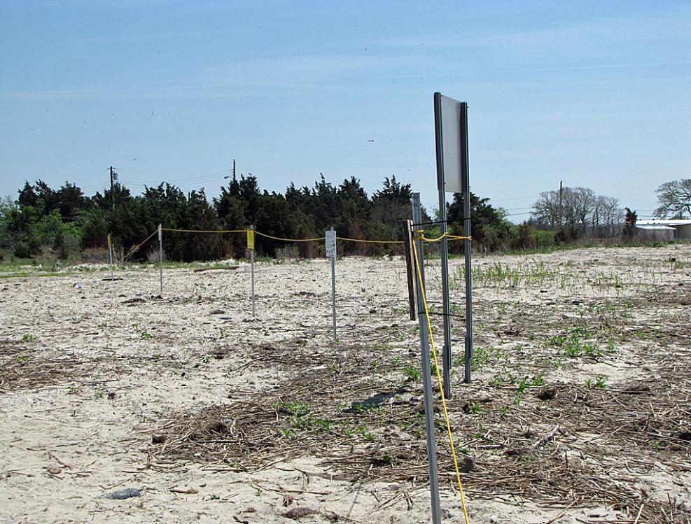 warning sign posts during the spawning season of horseshoe crabs.