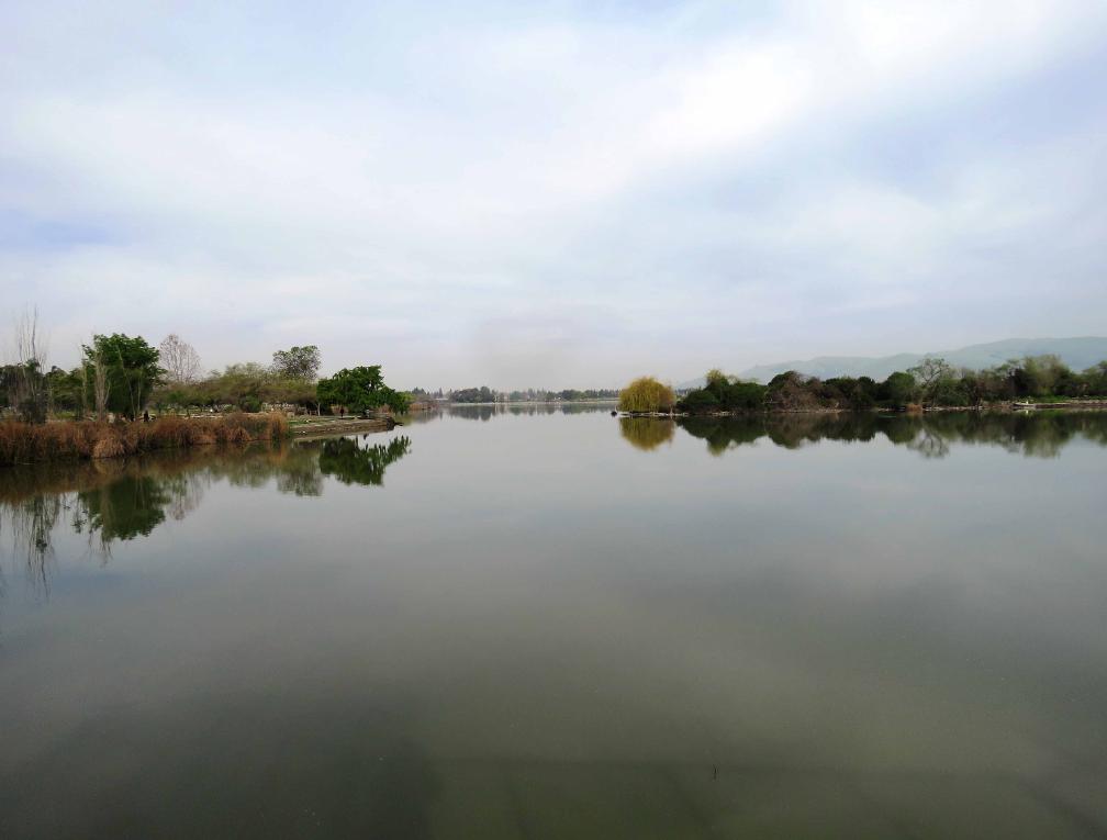 Beautiful Lake Elizabeth in the Central Park in Fremont in east side of San Francisco Bay.