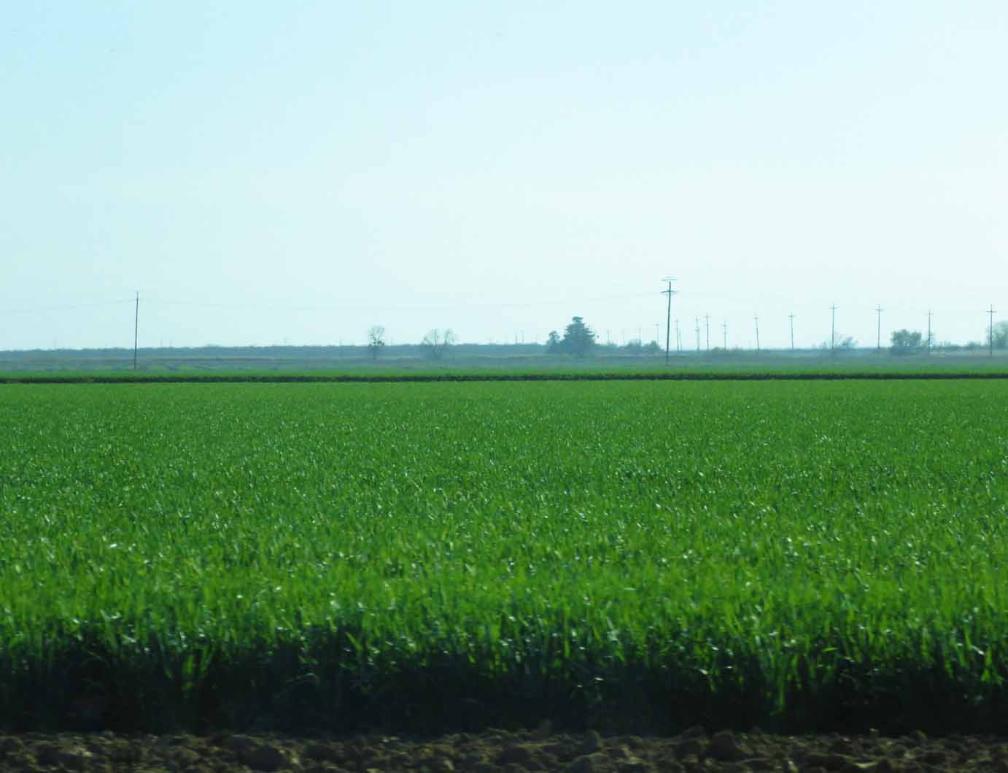 Nice view of large field of green in many farms in California Central Valley.