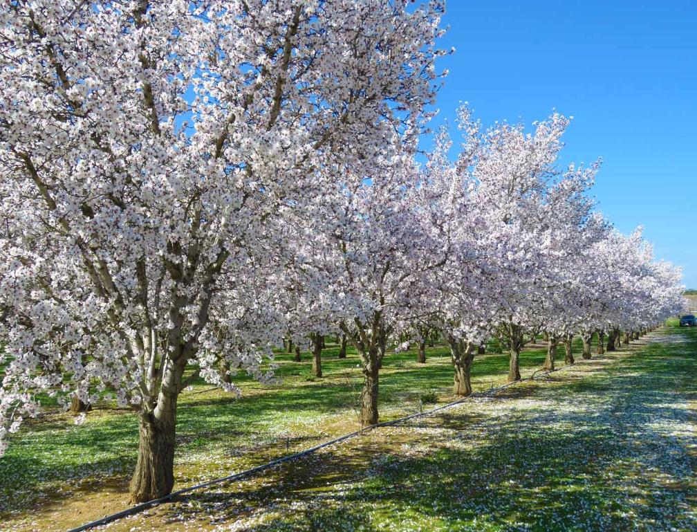 More than 450,000 acres in the lush San Joaquin and Sacramento valleys are under almond cultivation,