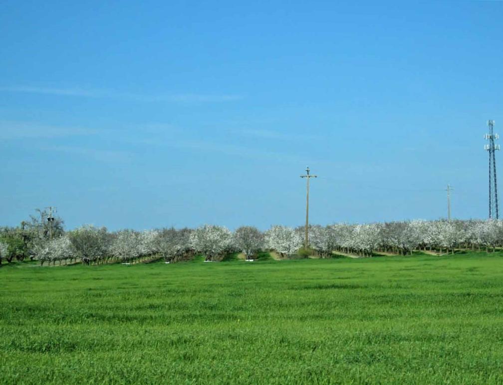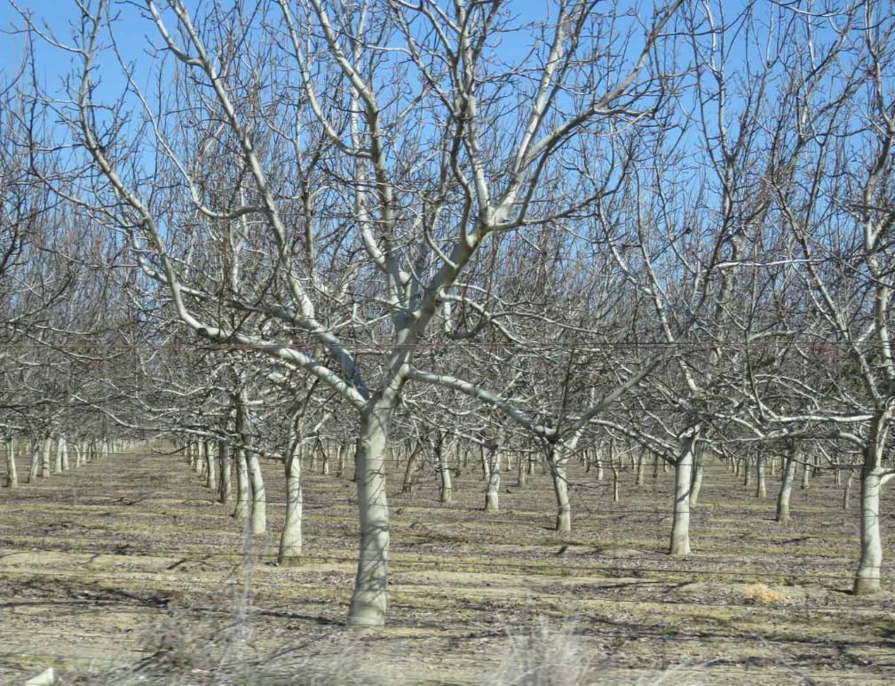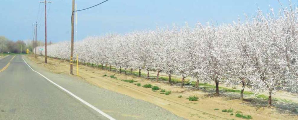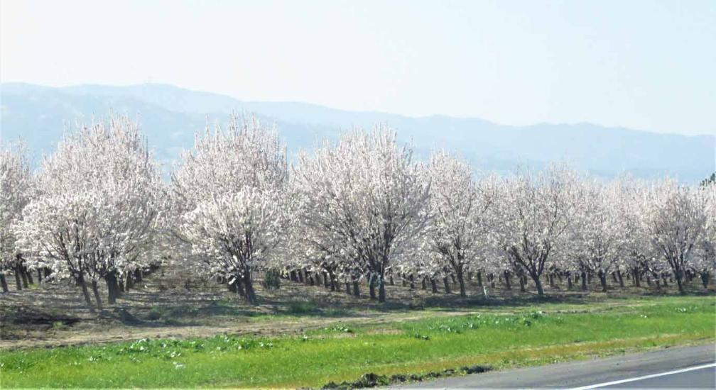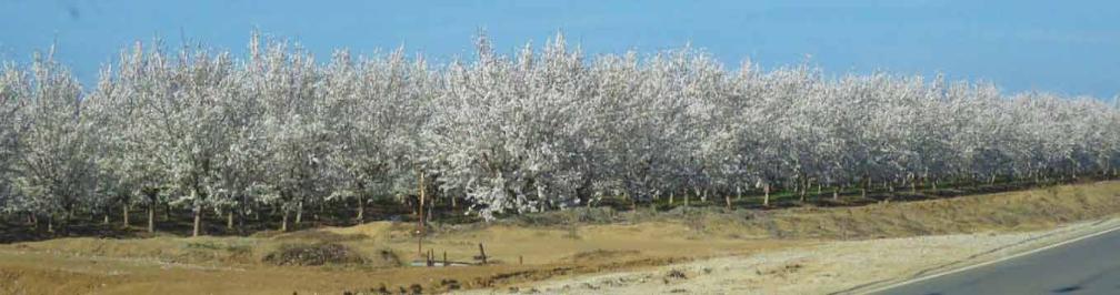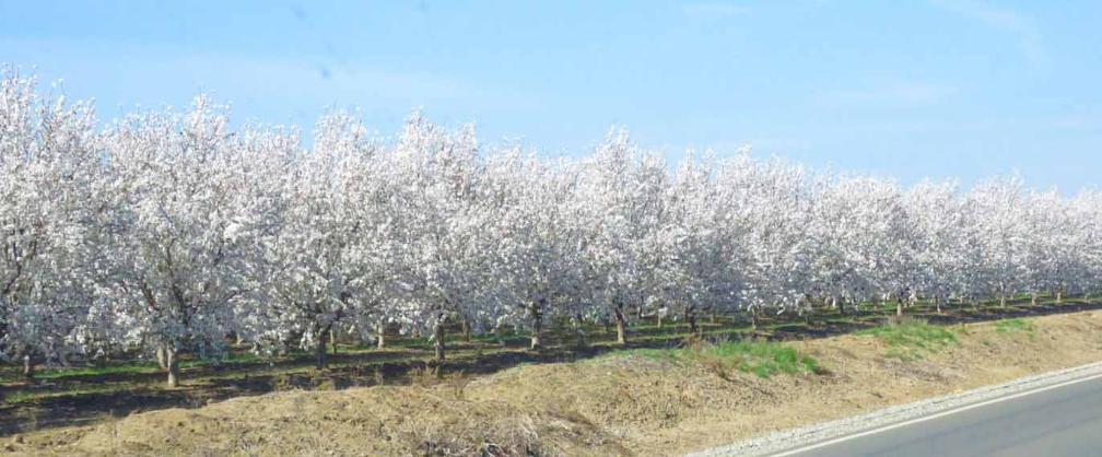 many orchards in the vast California Central Valley (from the south of Bakersfield to the north of Red Bluff) are