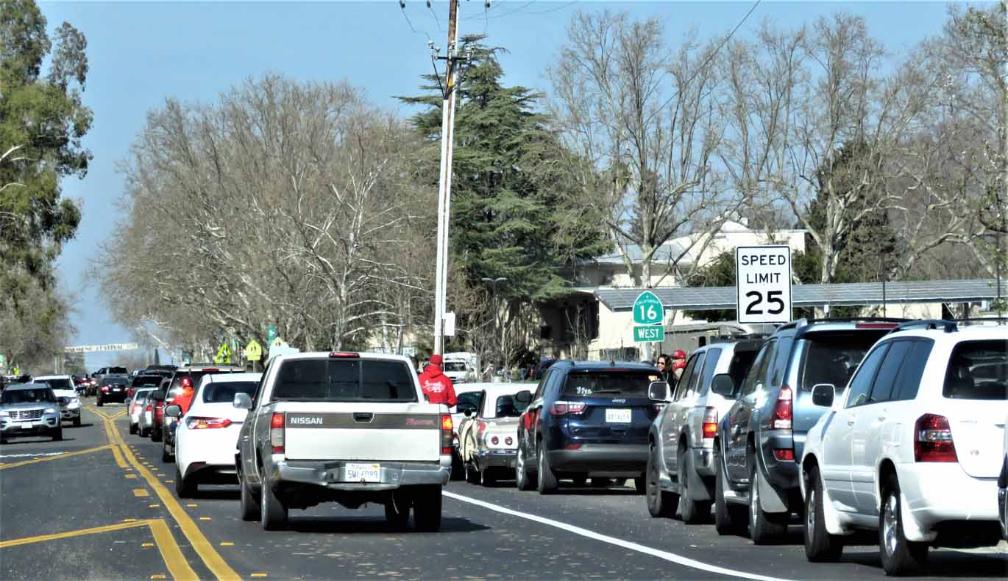 When we drove on Highway 16 West into the town of Esparto, Wow! There was heavy traffic jam with lots of