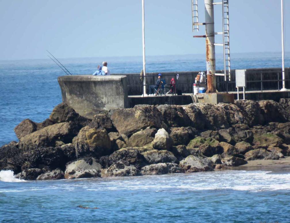Some people are fishing at Point Castillo, the far end of the breakwater wall and walk path.