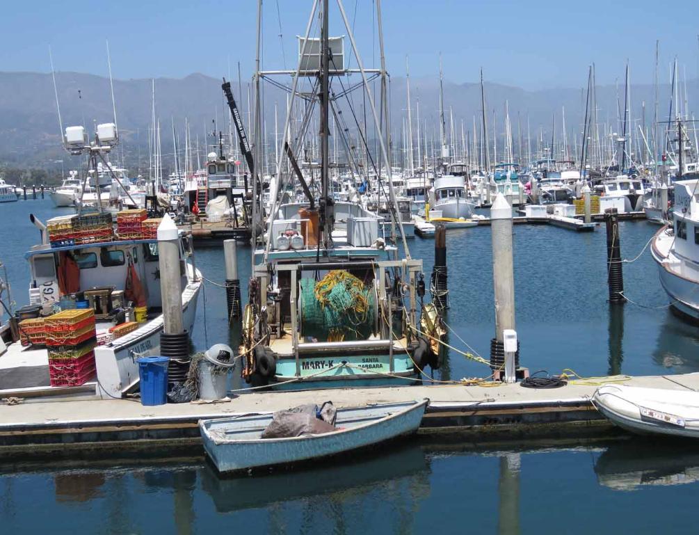 The Santa Barbara Harbor is a very busy place with many boats and lots of interesting activities. The far