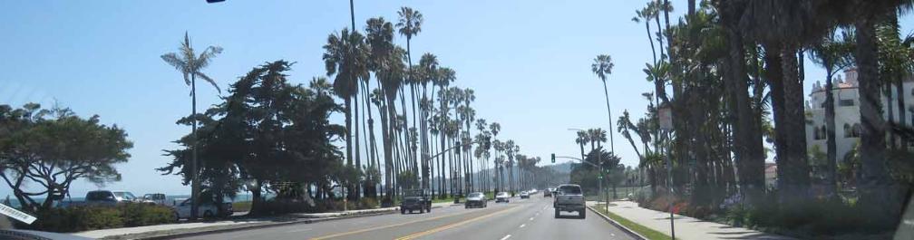 The palm trees that line the beautiful Shoreline Drive and E. Cabrillo Blvd near the Harbor and the Wharf.