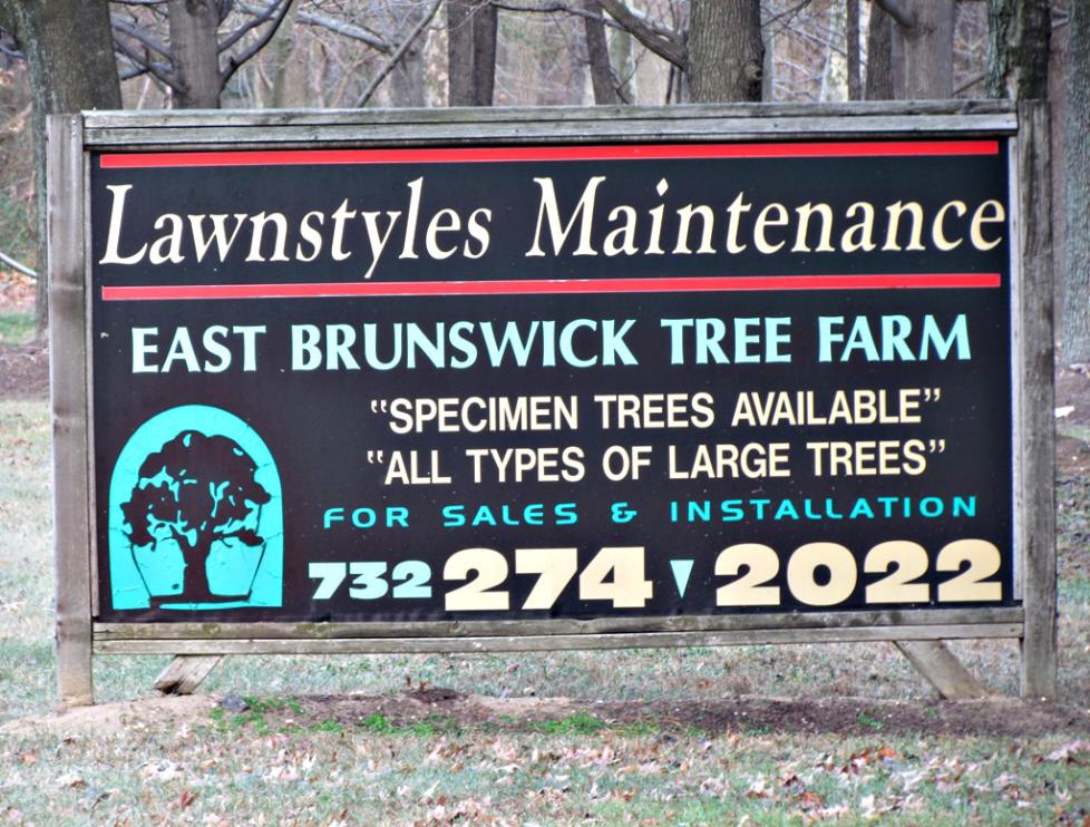 That farm field along Cranbury Road is next to this sign of East Brunswick Tree Farm.