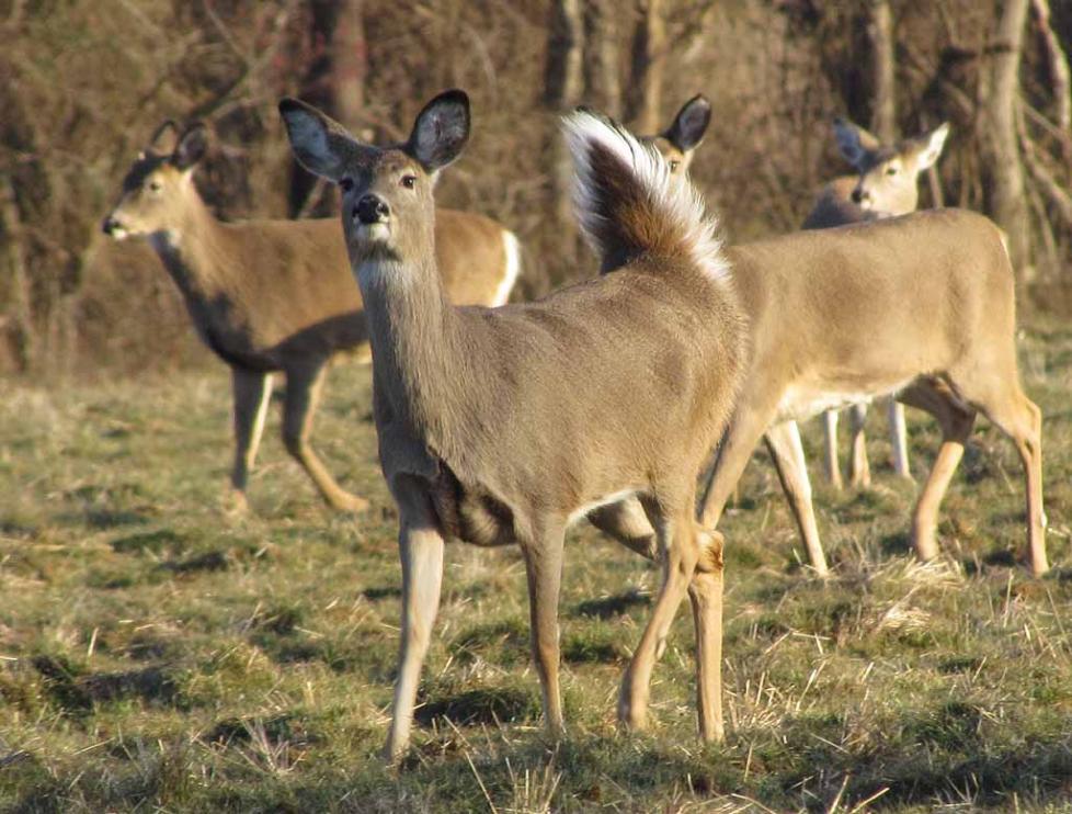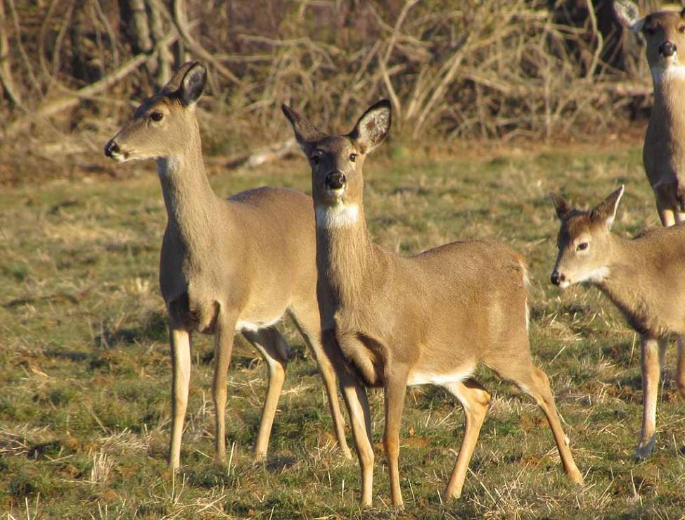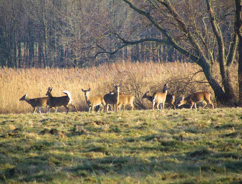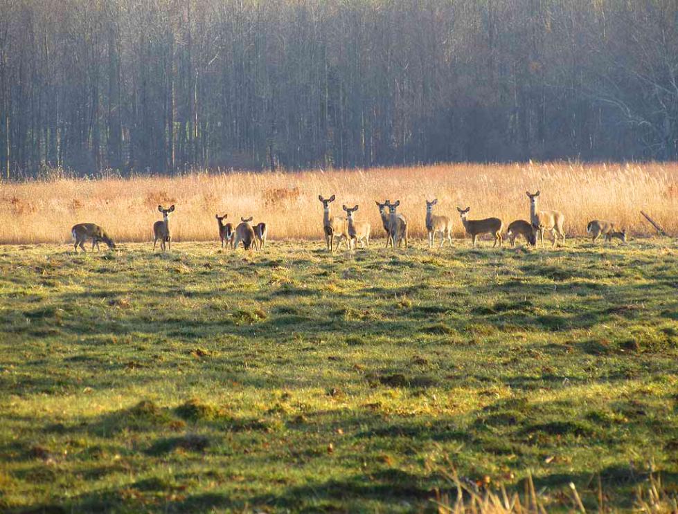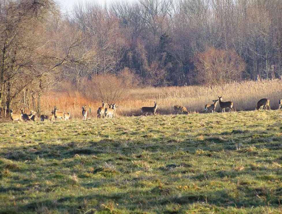 separated by tree lines on the south side of Dorbrook Recreational Area. The large herd of deer roams