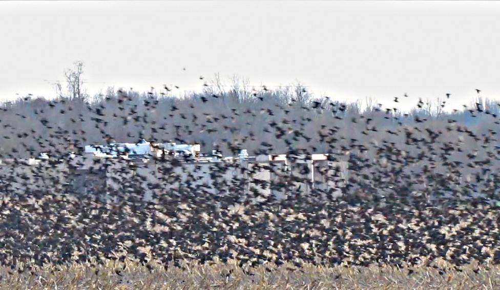 into the farm field to watch and to take movie clips of the huge group of black birds in action.