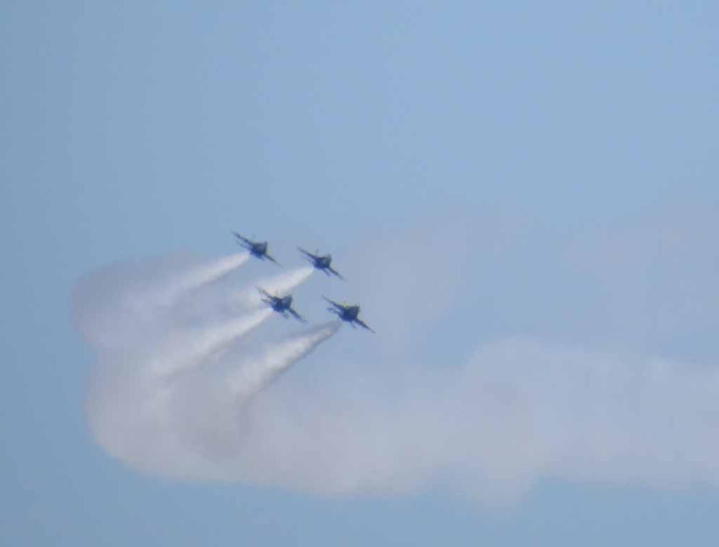 Suddenly, we were happily surprised to see and hear the thundering big birds of Blue Angels jets in the air