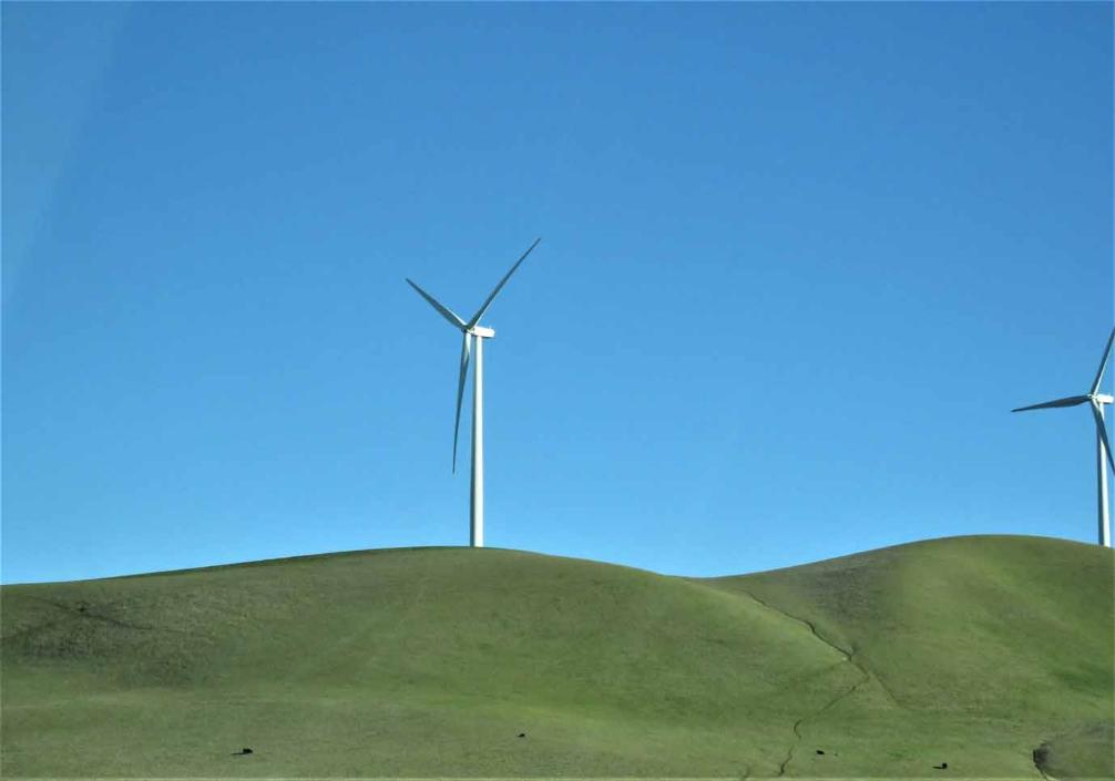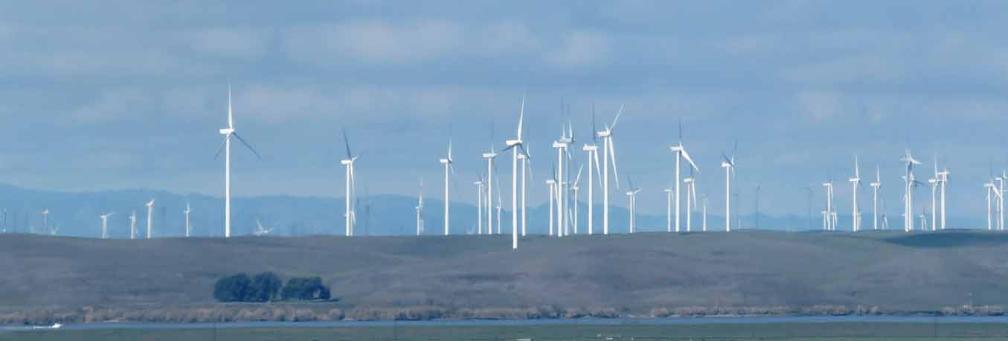 wind turbine farm on Montezuma Hills is near the Sacramento-San Joaquin River Delta area where the mighty