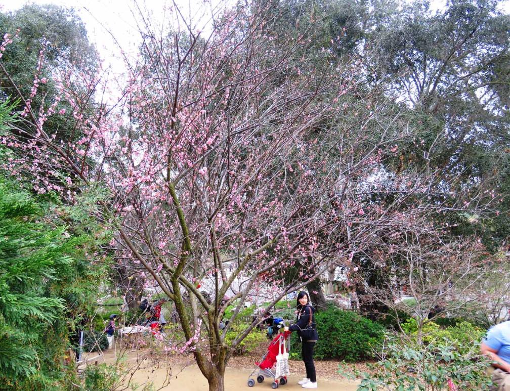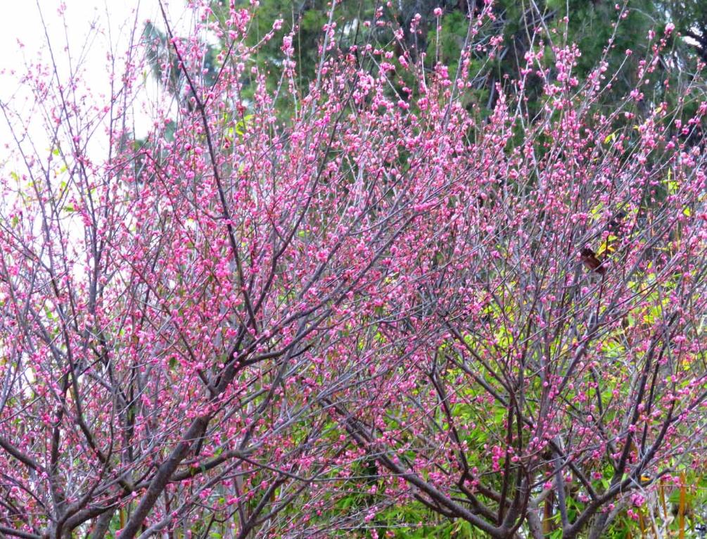 The garden erupts with striking pink Prunus Mume (梅花) blossoms in February. The entire area is blanketed