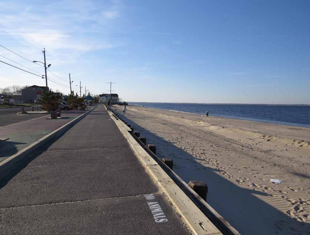 This Seawall Walkway at west end is the sandy beach of Cliffwood Beach Park.