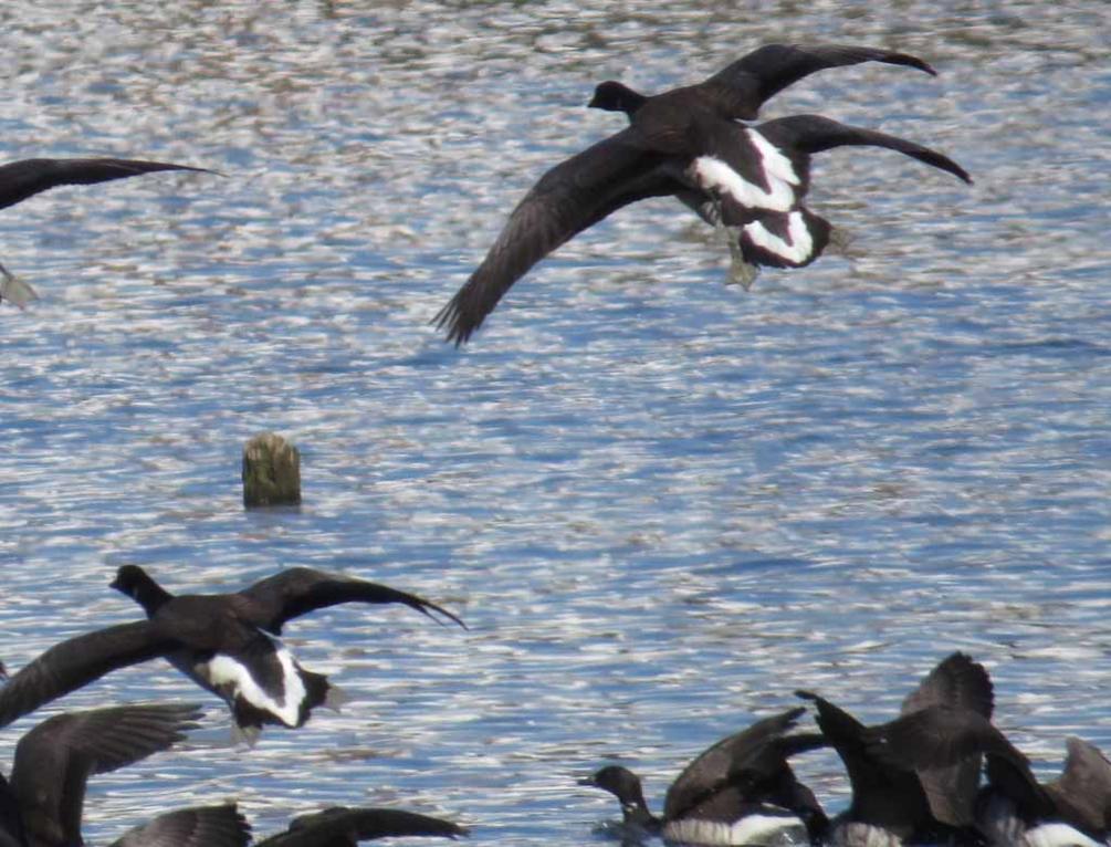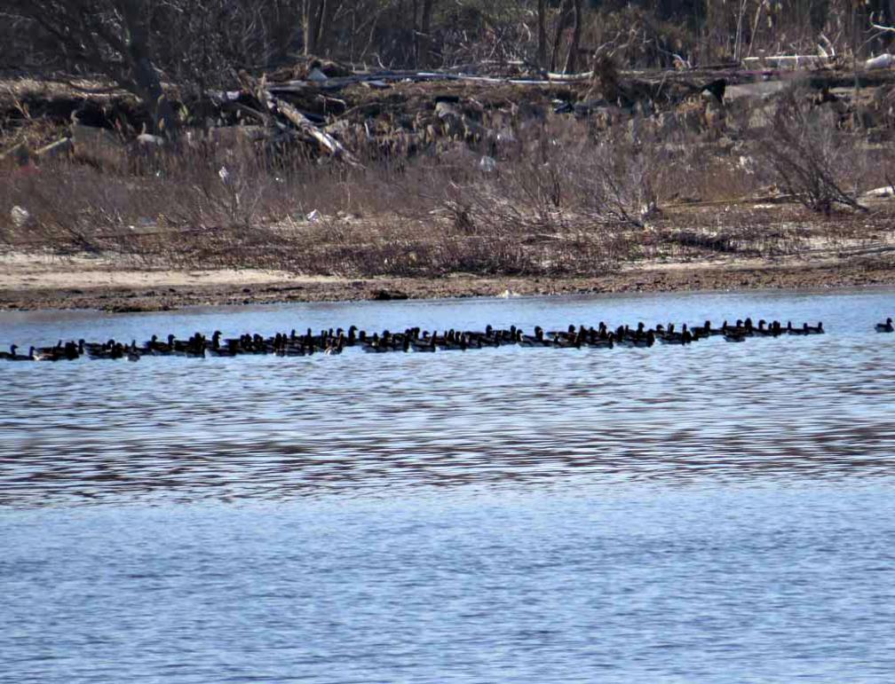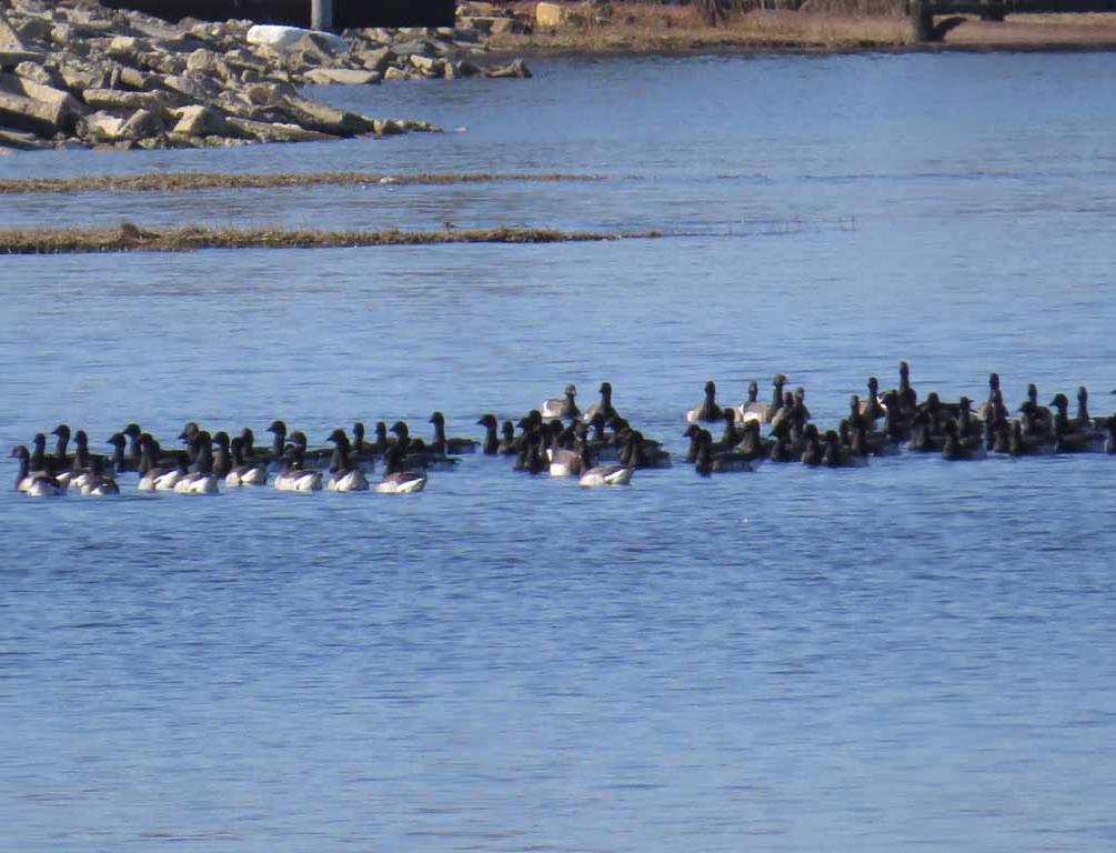 Another large group of many Brant at far (northwest) side of Keyport Harbor near the shoreline of Aberdeen.