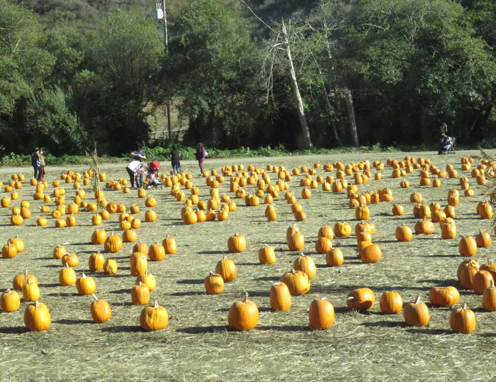 Many people buying pumpkins on a farm along Highway 92 and on another farm along Highway 1.