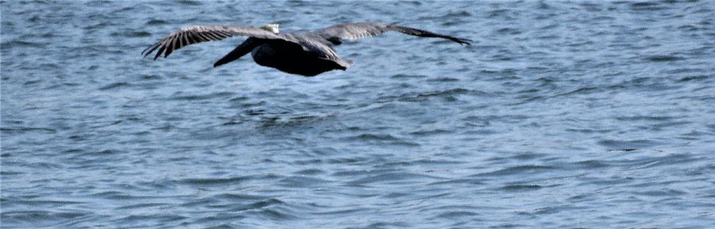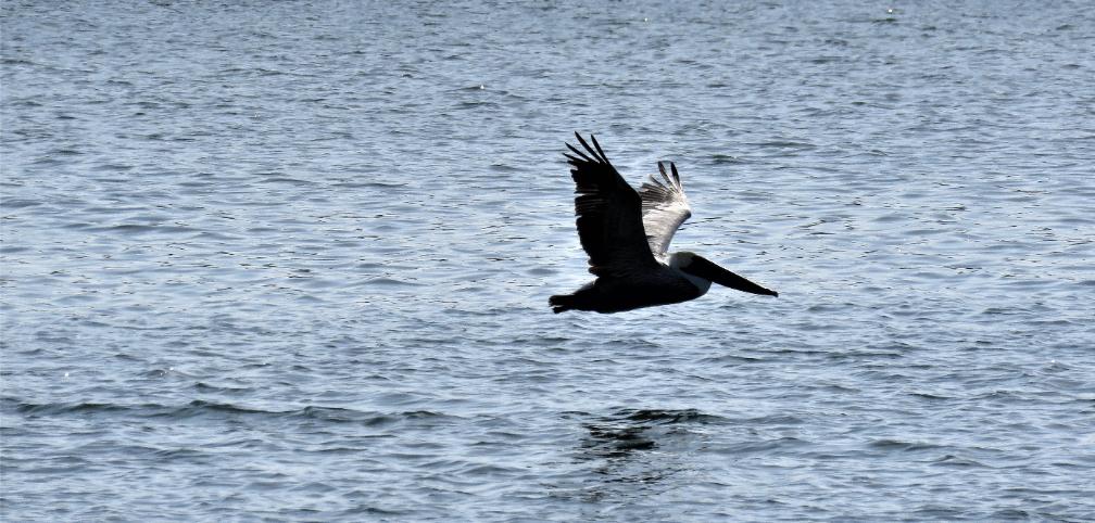 Pelicans often fly very low just above the water surface.