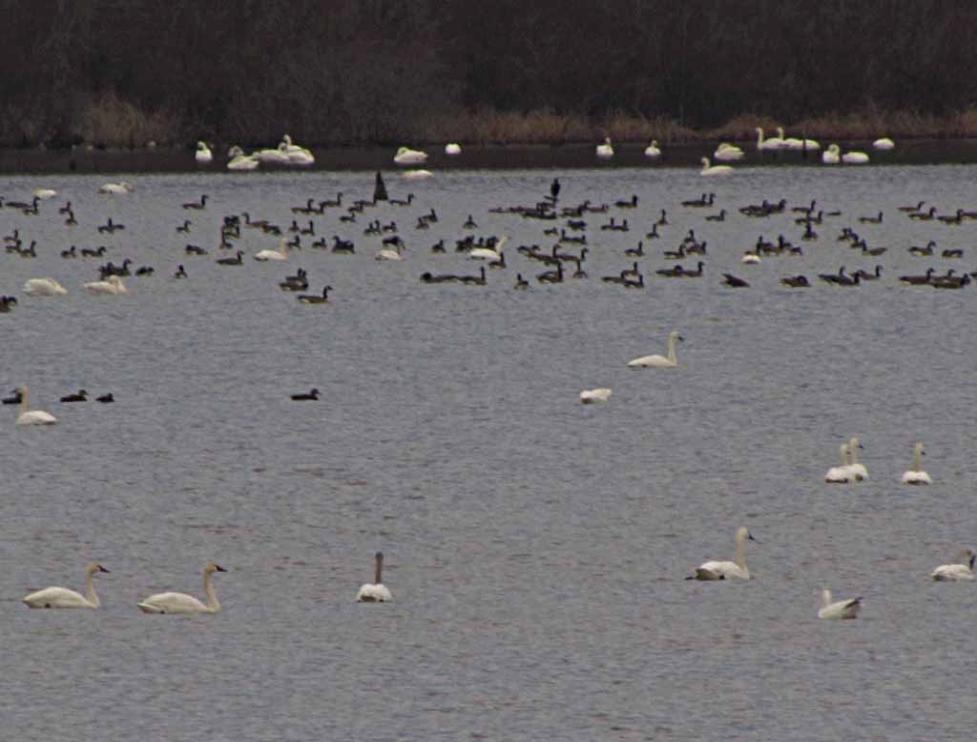 The lake is quite large (400 acres) and many snow geese and swans are very far away. I had to use 35X