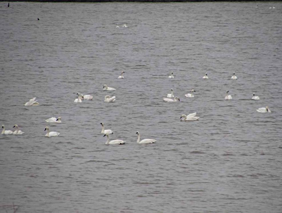 In addition to the snow geese, there are also thousands of tundra swans on the lake.