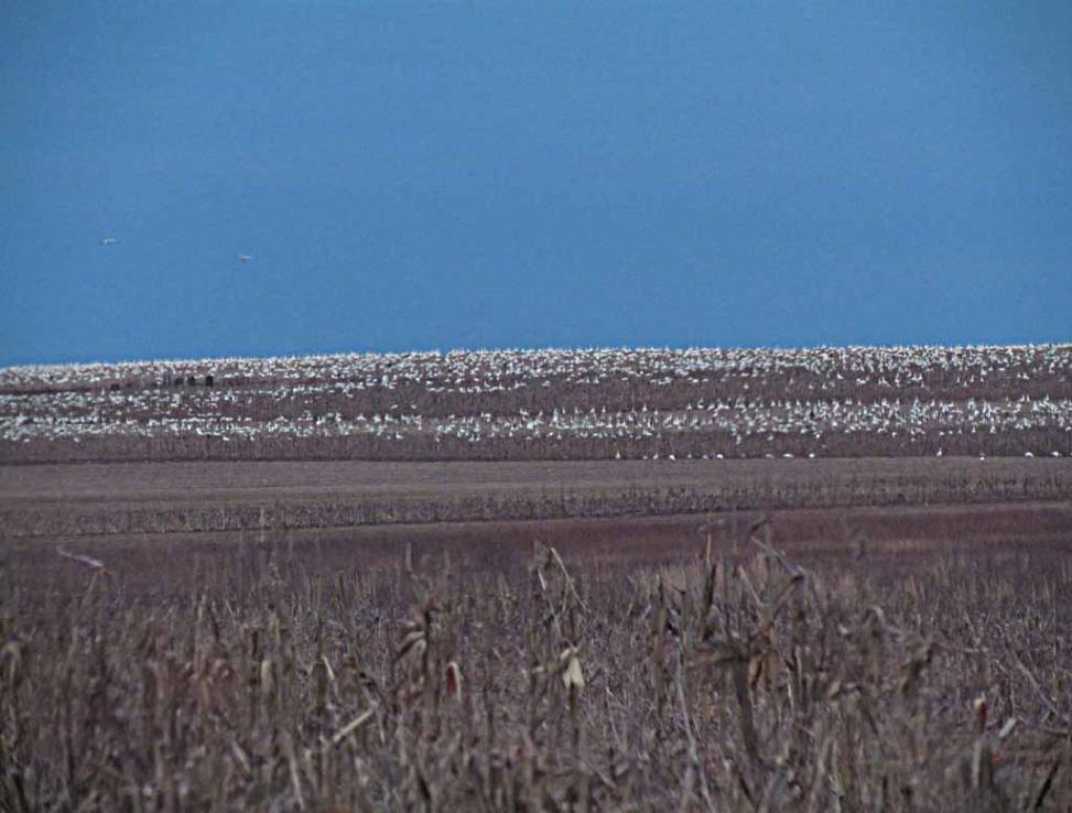 In the day time, these huge number (50,000 or more) of snow geese spread out to feed on nearby farm fields.