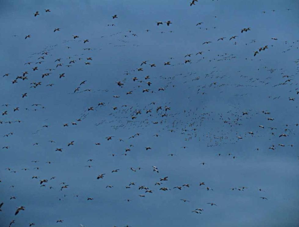 wave of huge flocks of snow geese flying in to the Middle Creek Lake as shown in the following